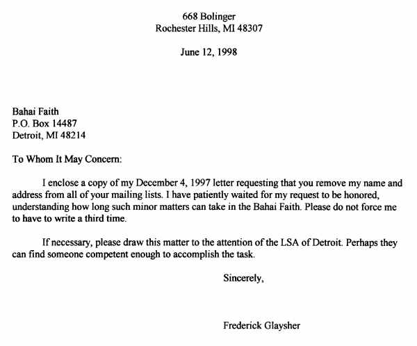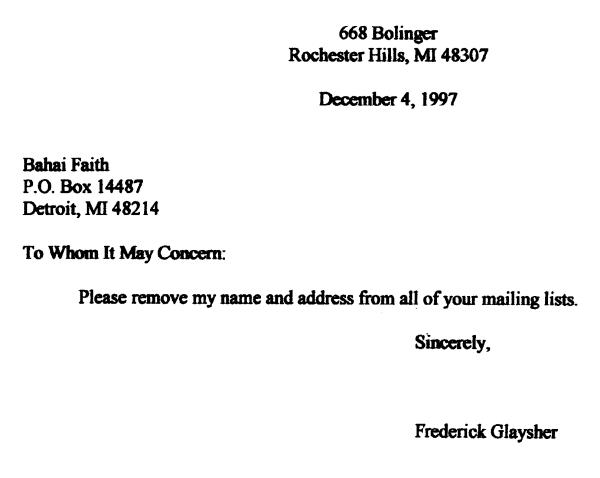 "Please remove my name and address from your mailing list." I had torn