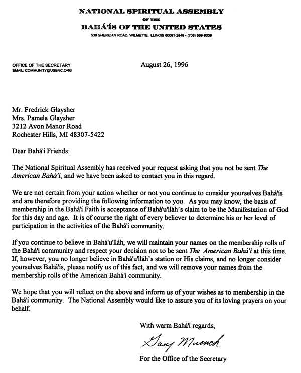 The other two letters were related to the Detroit local spiritual assembly and